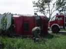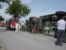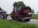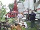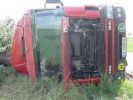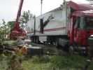 LKW UNFALL 19. Mai 2003 | Einsatz Auf der Straße Richtung Haslach ist am 19.05.2003 ein mit Frischfleisch beladener Sattelzug umgekippt. Die FF Hollabrunn und FF Nappersdorf mussten den LKW mittels Kran bergen.