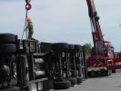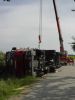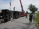 LKW UNFALL 19. Mai 2003 | Einsatz Auf der Straße Richtung Haslach ist am 19.05.2003 ein mit Frischfleisch beladener Sattelzug umgekippt. Die FF Hollabrunn und FF Nappersdorf mussten den LKW mittels Kran bergen.